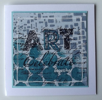 Vervolgens de stempel 'art celebrate' met zwarte inkt gestempeld en de r kleur gegeven met Derwent coloursoftpotlood.